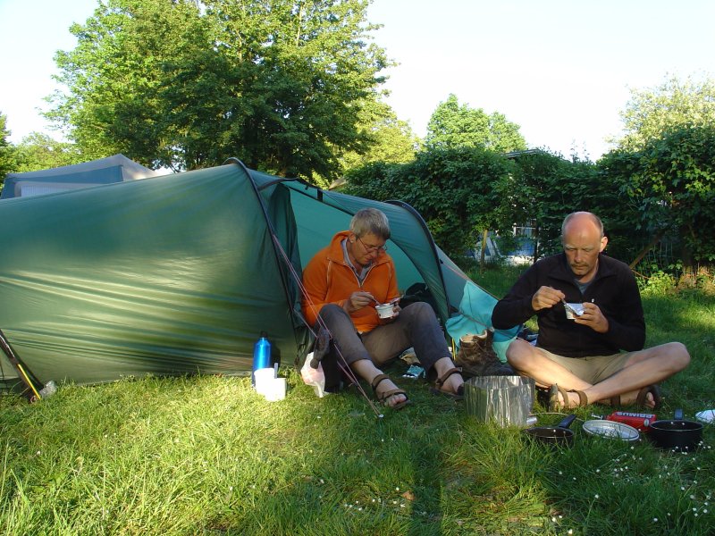 We staan weer bijtijds om op (7 uur). We hebben niet zo goed geslapen, Ina nog het minst. Het gazon blijkt een knollenveld te zijn met harde bulten en dat ligt niet echt lekker. We staan amper bij de bushalte of de bus komt er al aan. Ik wapper met een 20 € biljet maar die mag de blonde chauffeuse niet wisselen. Probleempje want ik kom 30 cent tekort om bij het eindpunt te komen. Gelukkig mogen we met wat schouderophalen en gezucht toch mee. Om 9.25 uur zitten we in de trein naar Visé en 35 minuten later lopen we het centrum van de stad in. We ontbijten in een croissanterie en kopen op de markt een lunch bestaande uit suikerbroodjes en sinaasappels.