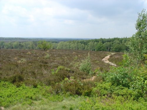 De volgende berg heet de Noetselerberg, een zestiger. Ook hier weer schitterende vergezichten over uitgestrekte heidevelden. Verder gaat het weer en het wordt steeds hoger, na de Haarlerberg (63 m) volgt de Grote Koningsbelt (75.5 m). Met een zonnetje dat steeds vaker door de wolken heen schijnt en een mooie wandeltemperatuur van 18 graden is het puur genieten.