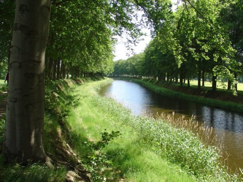 Na enige tijd bereiken we Holten. Tegenover het station vinden we een ultieme plek om even in het zonnetje uit te rusten. De koffie met appelgebak en slagroom smaken beter dan ooit. Met enige gepaste tegenzin komen we uiteindelijk weer in beweging. De verdere wandeling loopt vandaag langs kaarsrechte paden en wegen, aanvankelijk door bossen, later ook door landerijen. Er is geen kip te zien.