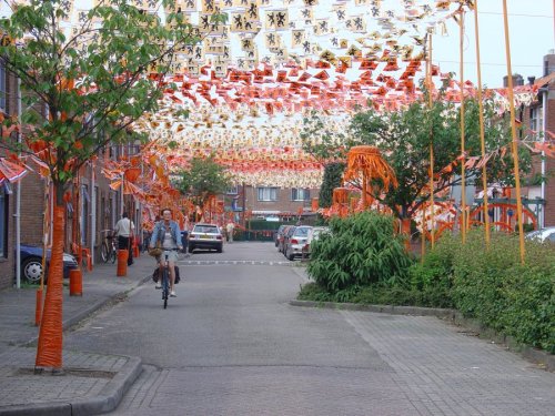 Na weer 8 km zitten we in Doetinchem aan de pizza. We komen de rest van de dag geen restaurant meer tegen dus we kiezen voor safe. Onthoudt echter dit adres: Pizzeria, Grutstraat 17 en ga daar nooit naar toe. Oranje gezind zijn ze in ieder geval wel in Doetinchem, althans wat de voorliefde voor voetbal betreft. Het doet ons soms gewoon zeer aan de ogen. Om 18.15 uur lopen we Doetinchem weer uit richting recreatiepark “Stroombroek”.