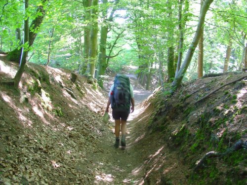 We lopen over steile bospaden, holle wegen en langs mooie vijvers naar onze eerste stop. Dat we in Limburg zijn aangekomen vieren we met koffie met echte vlaai. De warmte begint vandaag al vroeg. Gelukkig loopt het eerst volgende stuk onder de bomen aan de Duitse kant van de grens.