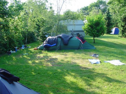 Het stuk van de grens naar Gennep is lang en heet. Een beetje wind zorgt dat de 29 graden schaduw temperatuur nog wat dragelijk is. Gennep is een leuk dorp met een mooi centrum, maar wij moeten verder. Rond 16.00 uur bereiken we volledig oververhit de mini-camping “de Merelhoeve”. De boer/eigenaar verbouwd naast asperges ook aardbeien en die smaken goed.