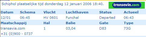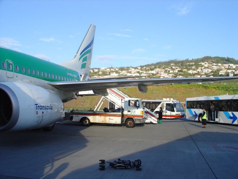 Als tweede vliegtuig van de lijst vliegen we keurig op tijd naar Madeira. De vlucht zelf verloopt voorspoedig (3 uur en 40 minuten). Later horen we dat Schiphol die dag door de mist veel vertraging en zelfs gecancelde vluchten heeft gehad, maar daar hebben we op dat moment geen weet van.