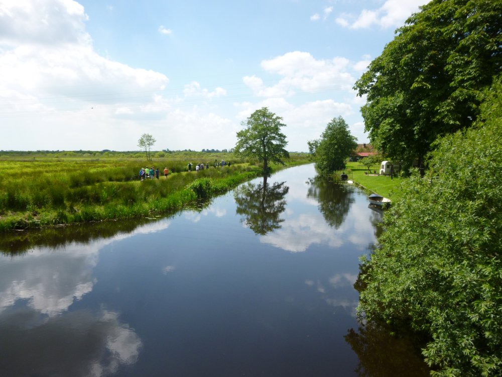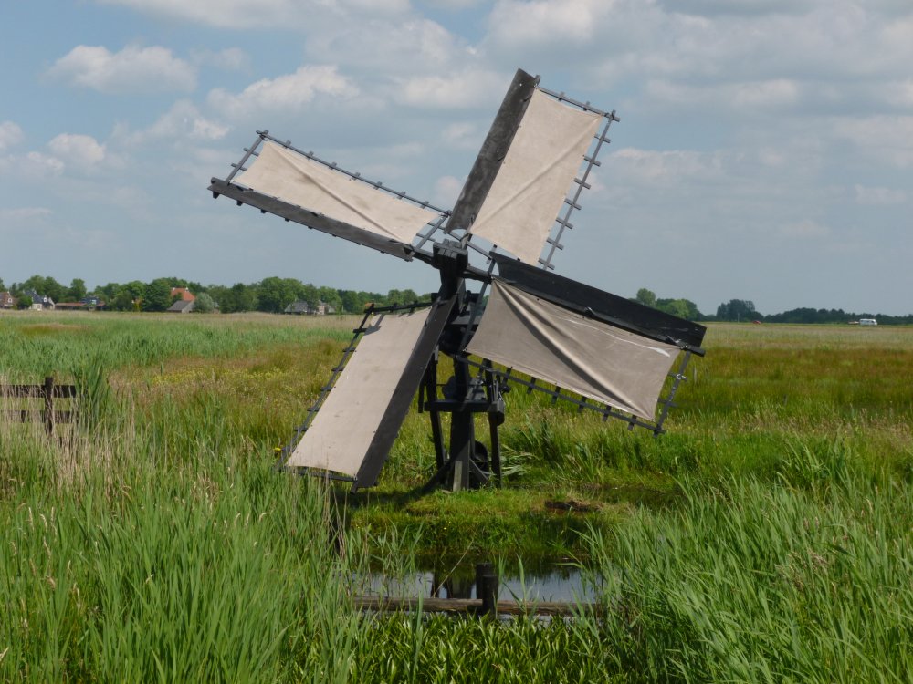 De lange weg over de Goddeloze Singel naar Veenwouden loopt dwars door een groot veen- annex natuurgebied, waar moerasorchideeën langs de weg staan en de wolken een dubbelleven leiden in de schaduwen op het water. Het is goed dat het mooi weer is, anders zou hier niet veel te beleven zijn. Interessant ook is de replica van een Tjasker-molen die langs de weg staat. Deze op wind aangedreven watermolen draait met een soort schroef rond de as het water omhoog. Dit soort makkelijk verplaatsbare molens werd veel gebruikt om de polders te ontginnen.