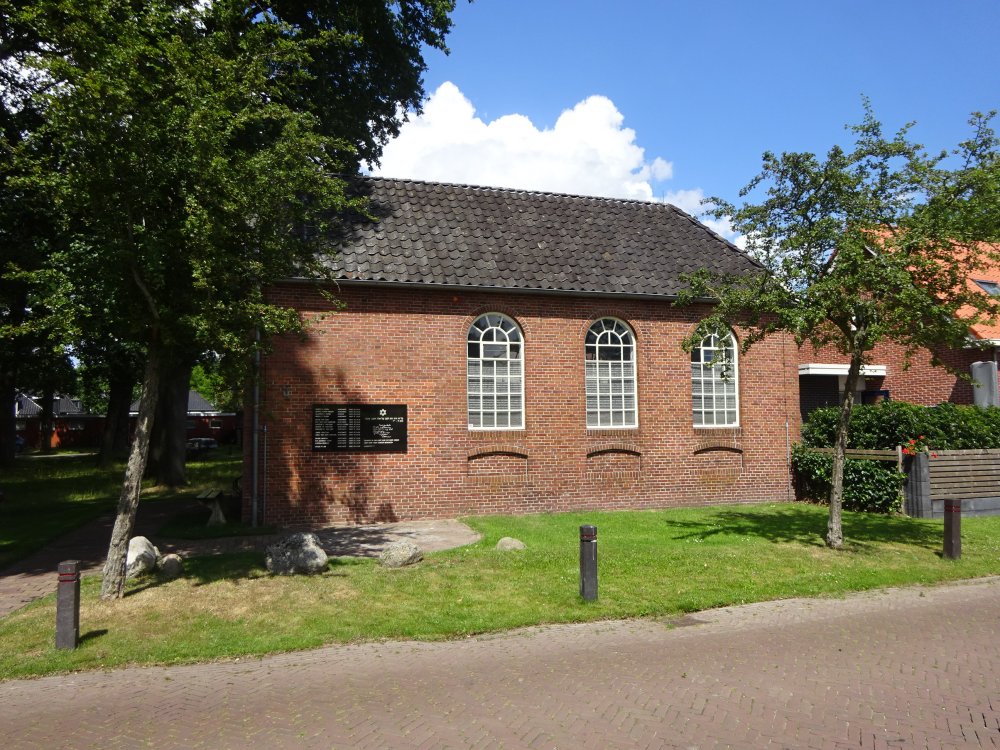 Al sinds 1750 woonden er enkele grote Joodse families in Zuidlaren. Vanaf 1884 kon men kerken in een eigen synagoge. Echter in 1925 werd de Joodse gemeente al weer opgeheven, vanwege een te klein aantal kerkleden. In 1942 en 1943 werden de 3 nog aanwezige families: Cohen, van Dam en Joosten afgevoerd naar Auschwitz en daar vermoord. Op de maquette staan de namen van 15 personen genoemd. Op een bankje naast de synagoge nemen we onze lunch en kijken naar de bedrijvigheid om ons heen.