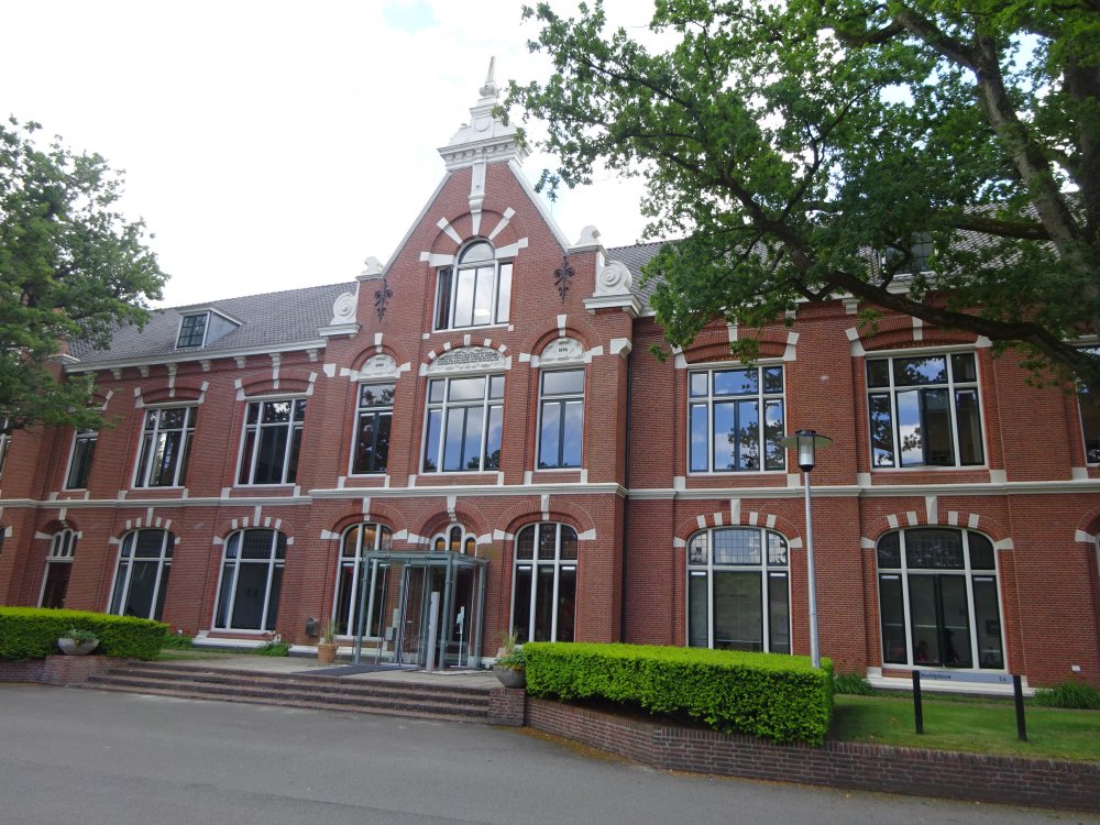 Het Drenthepad gaat verder dwars door Dennenoord. In 1895 werd hier het eerste gesticht “van Krankzinnigen en Zenuwlijders” geopend met 4 paviljoens. Later is dat uitgebreid naar 18 paviljoens. Om elk gebouw stond een hek van 2 meter hoog en het hele gebied van Dennenoord was omheind met een hoog hek en een toegangspoort. Inzichten veranderen en de “gekken” werden patiënten die konden worden behandeld. Na 1950 verdwenen de hekken en ontstond de nu zo fraaie open structuur. We staan even stil om naar de architectuur te kijken van het hoofdgebouw ook uit 1895. Het is nu het hoofdkantoor van Lentis, een instituut voor geestelijke gezondheidszorg (GGZ), forensische gezondheidszorg en ouderenzorg in de provincies Groningen, Drenthe en Friesland.