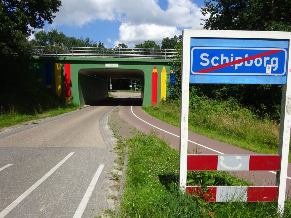 Na het verlaten van Dennenoord komen we via een tunnel onder de N34 in Schipborg. De Zeegerweg brengt ons naar de Drentsche Aa, waar we bij het gelijknamige restaurant links af slaan weer Schipborg in. We lopen langzaam weer richting de N34, maar buigen vlak voor het bereiken ervan het natuurgebied Strubben/Kniphorstbosch in. De Strubben zijn de benaming voor kreupelhout, lage grillig gevormde eikenbosjes op de overgang van de es van Schipborg en het heideveld. Het Kniphorstbosch heeft zijn naam te danken aan de familie Kniphorst die destijds de heide liet ontginnen om er een bos aan te leggen voor de houtteelt.