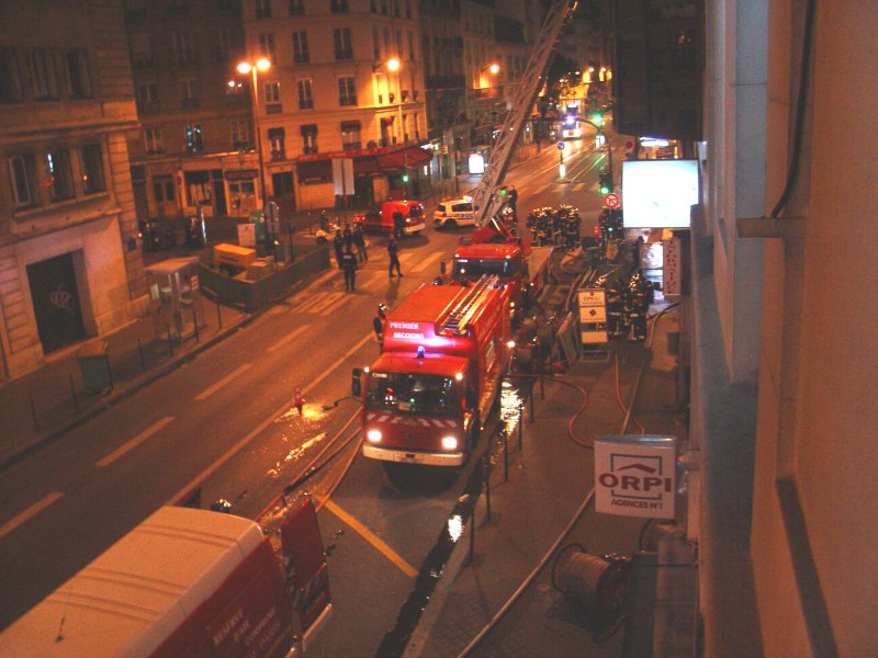 De laatste nacht voor ons vertrek hoor ik midden in de nacht allemaal vreemde geluiden. Eerst hoor ik sirenes en daarna iets van draaiende motoren en veel luidkeels geroep. Ik heb al het vermoeden wat er aan de hand is en ja hoor, als ik naar buiten kijk zie ik dat de straat is afgezet en het wemelt van de brandweerauto's en de slangen. Drie huizen verder staat een gebouw in lichter laaie. Onze portier staat er ook naar te kijken en gebaard dat alles OK is. Na een half uur schuift de ladderwagen weer in. Tijd om weer te gaan slapen. Morgen naar huis.