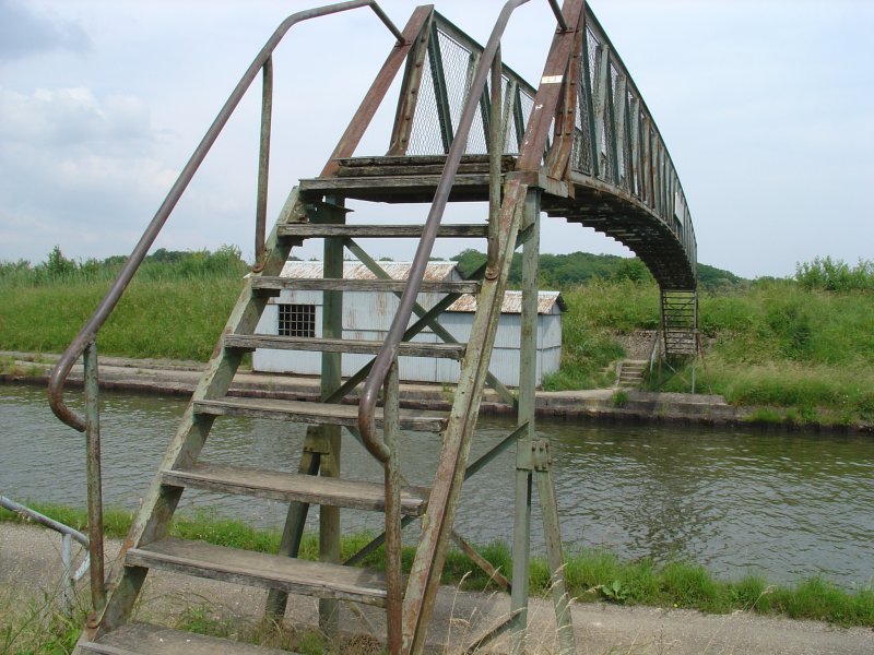 Vanaf Diane-Capelle lopen we langs het Canal des Houillières, een oude vaarverbinding tussen Saarbrücken en Nancy. Deze verbinding mondt uit in het Marne-Rijn kanaal. Vroeger een drukte van belang met veel vrachtverkeer, nu enkel maar plezierjachtjes. Het is nu een ideaal gebied voor de watersport geworden. Ook aan het brugje dat we over moeten is de vergane glorie goed te zien. Er is niet veel voor nodig om de hele boel te laten instorten, we zijn blij dat het niet toevallig gebeurd als wij erop lopen.