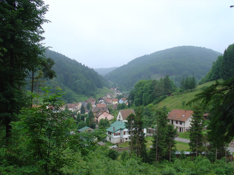 Terwijl we het centrum van Schirmeck opzoeken breekt de zon door en wordt het direct warm en benauwd. Het is vandaag zaterdag en het is gezellig druk in het stadje. In een restaurant schrijf ik snel een stukje voor onze fans en met een sprint rennen we naar de overkant van de straat waar zich een cyber-café bevindt. Precies op sluitingstijd is het derde verhaal naar Hein verzonden. Het begint weer te regenen en we vluchten een Chinees restaurant in. Eten koken wordt vast niets meer vandaag, dus we nemen nu maar wat.