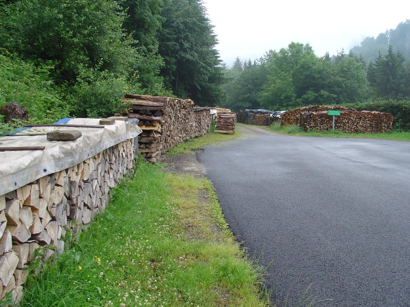 Nadat het regen is gestopt lopen we door een nadruipend Wanckenbach richting Schirmeck. Het is opvallend hoeveel hout hier overal ligt opgeslagen. Waarschijnlijk heeft het iets met de grote storm van een paar jaar geleden te maken.