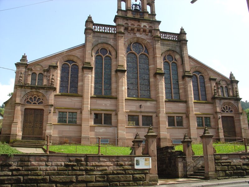 We lopen nog een ommetje door Rothau en kijken waar we morgen het beste de route weer op kunnen pakken. Door voor Rothau te kiezen zijn we enkele kilometers van de route afgeweken en teruglopen is nog steeds een woord wat we niet kennen. We vinden ook nog een bakker die op zondag om 8 uur open gaat. Vlak bij de camping staat een niet alledaagse kerk met een erg brede voorgevel. Het gaat om een Lutherse Tempel zoals ze het zelf noemen, in ieder geval heel apart.Bij onze dagelijkse controle vinden we opvallend veel teken. Ina heeft er 4 en ikzelf kom op maar liefst 16 stuks. Het zal wel aan het benauwde weer hebben gelegen dat het er zoveel zijn. Het houdt ons in ieder geval weer een tijdje bezig om ze te verwijderen.