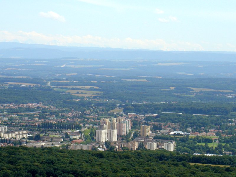 In Evette-Salbert eten we ons stokbrood met kaas en komen daarna moeilijk opgang mede ook omdat het weer erg warm is geworden. De temperatuur is weer omhooggevlogen naar 28 graden. Gisteren was het niet veel warmer dan 10 graden! De klim naar "Fort du Salbert" naar 625 meter is in het begin supersteil en met de hitte erbij vergt dit veel van onze vermogens. Na bijna 1 uur hebben we onszelf naar boven gesleept en kijken we uit over de stad Belfort.