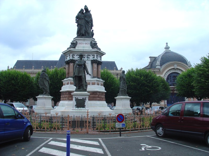 's Nachts valt al de eerste regen. We slapen er goed op. De ochtend begint met wat zon en op aanwijzing kan ik brood vinden in een tabakswinkel. Tegen 11 uur lopen we naar het centrum van Belfort, maar van sight-seeing komt niet veel. De meeste tijd regent het, soms schijnt ook even de zon dan maak ik snel wat foto's. We beperken onze activiteiten tot wat boodschappen. Symbolisch hebben we van tevoren gezegd dat het eind van het derde boekje en dus ook het begin van de Jura voor Ina een reden is om een rokje te kopen. Dat rokje krijgt ze dan van mij. Dat we inmiddels flink zijn afgevallen merkt Ina bij het passen...