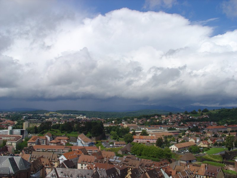We krijgen SMS-jes van Jaap en Roel met goede berichten en daar knappen we ook van op. Tegenover het station nemen we een pizza als lunch ook om het moreel nog wat verder op te krikken. Het blijft ondertussen met tussenpozen regenen en na de boodschappen bezoeken we het fort van Belfort dat boven de stad uittorent. De fortificaties zijn het resultaat van de eeuwenlange pogingen van Duitsland om dit deel van Frankrijk te annexeren. Om er voorgoed van af te zijn is elk heuveltopje door de fransen volgebouwd met forten. Eenmaal terug op de camping regent het nog harder. Met 3 pogingen krijg ik de soep eindelijk warm en de rest van de avond zitten we in de kantine.