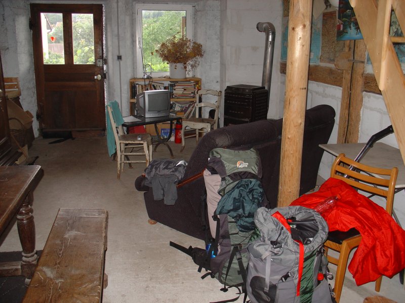 Er woont tijdens de zomermaanden ook een student in de Gite, die vormt mede de oorzaak van de bende. De vaat van enkele dagen staat op het aanrecht en iets schoonmaken is bij hem niet aan de orde. Hij woont ergens in de Jura en is op zich wel aardig. Op ons verzoek zet hij de houtkachel aan en dat geeft wat warmte in het kille vertrek. De bedden liggen op zich wel comfortabel, maar we slapen wel in onze eigen slaapzak. Het beddengoed vertrouwen we niet.