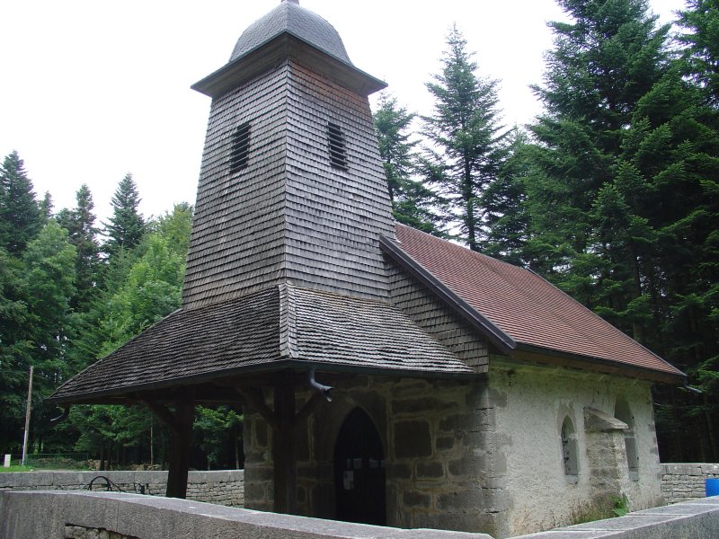 In Fessevillers is het restaurant ook open! We nemen een soort sandwich met cola. Het stelt niet veel voor maar we hebben weer wat binnen. We klimmen hoger tot bijna 1000 meter. Midden in het bos komen we een kapel tegen. Het is een apart gebouwtje opgericht ter nagedachtenis van een uitgezonden missionaris.