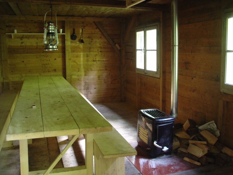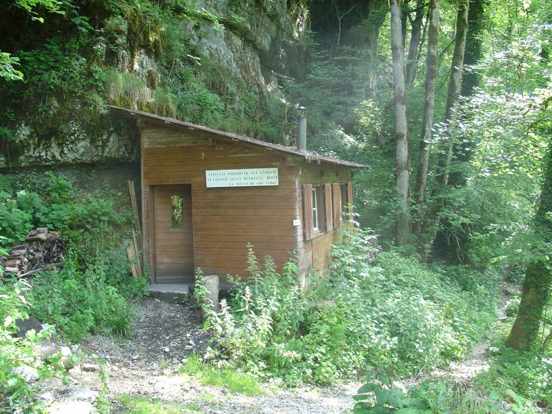 Onverwacht komen we weer een hut tegen, met alle ingrediënten voor een overnachting. Zelfs een bijl en houtblokken liggen er om te gebruiken. Zoiets kan alleen blijven bestaan als er uitsluitend mensen passeren die baat hebben bij deze voorzieningen. De rivier is ook hier soms woest en maar voor een barrage weer heel kalm. Vlak voor de stuwdam van Châtelot is de rivier zelfs bijna droog. Er wordt wel overal gewaarschuwd dat als het water in het stuwmeer te hoog komt te staan de dam op een kier wordt gezet, hetgeen resulteert in een plotselinge waterspiegel stijging van enkele meters onder de dam (overigens zonder waarschuwing vooraf). Pootje baden kan hier dus wel eens erg nat worden.